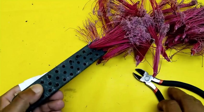 Из изношенных щеток можно вытащить ворс, оставив основание. Оно просверливается и окрашивается.