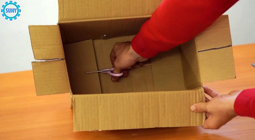 Если вам нужно поместить что-то длинное в короткую картонную коробку, тогда можете ее удлинить. Для этого нужно разрезать пополам ее боковые узкие клапаны. Аналогично делается с обратной стороны.
