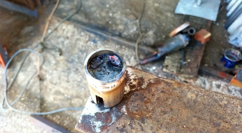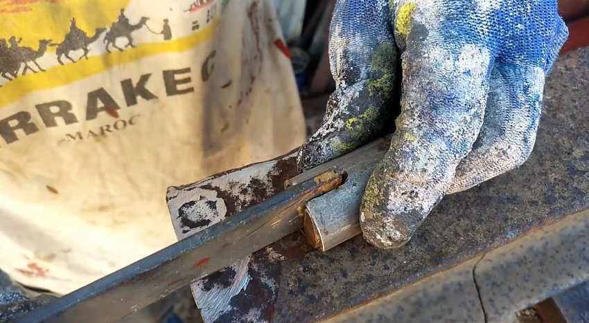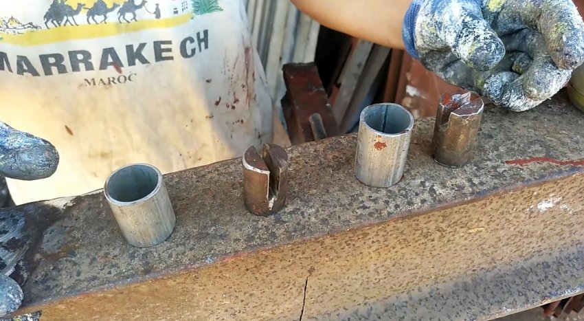 На трубе и стальном круглом стержне с двух концов выполняем разметку под соответственно поперечный и продольный расчетный пропил. От трубы и стального стержня по разметке отрезаем два фрагмента необходимой длины.