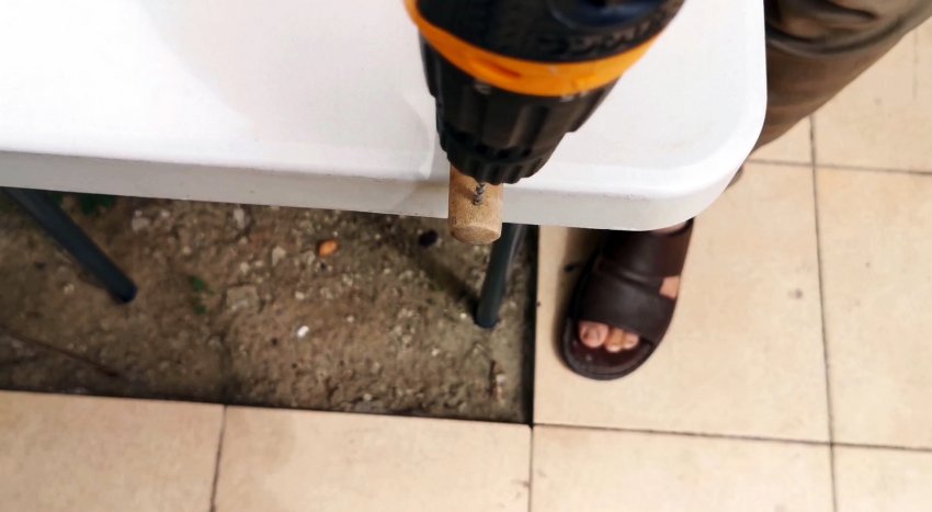Можно конечно использовать саморез для крепления. На этом простейший сборщик фруктов готов.