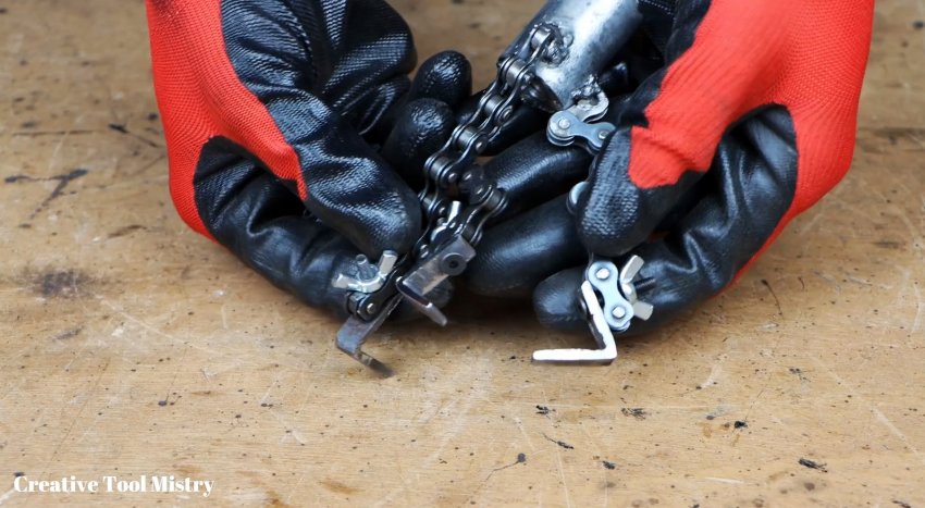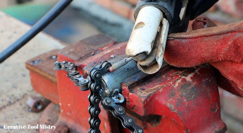 К трубке привариваем 3 отрезка роликовой цепи длиной по 10 см.