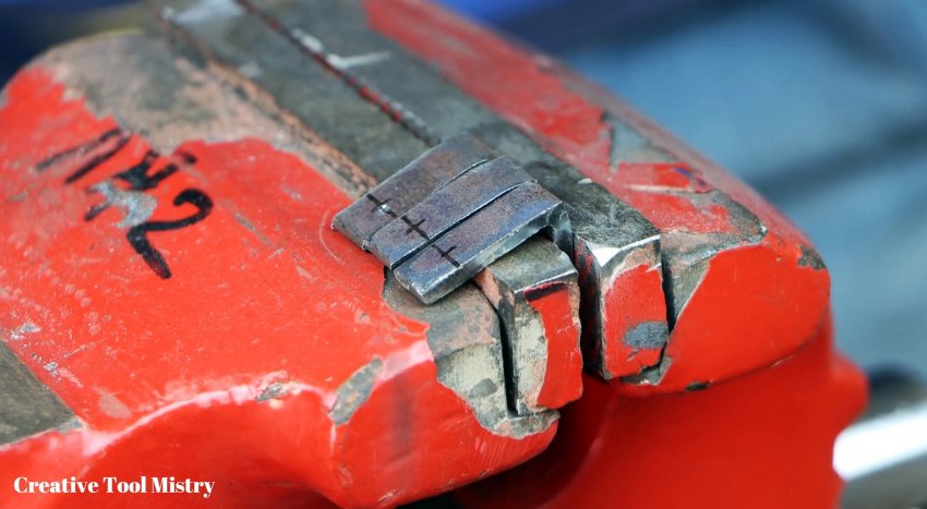 Болт М12 требуется заточить на конце. Затем он разогревается докрасна и окунается в отработку. Без закалки его острие постоянно будет сминаться, и его придется перетачивать, так что этим этапом не нужно пренебрегать.