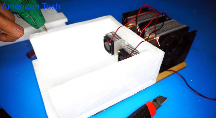 Генератор холода мажем с одной стороны горячим клеем.