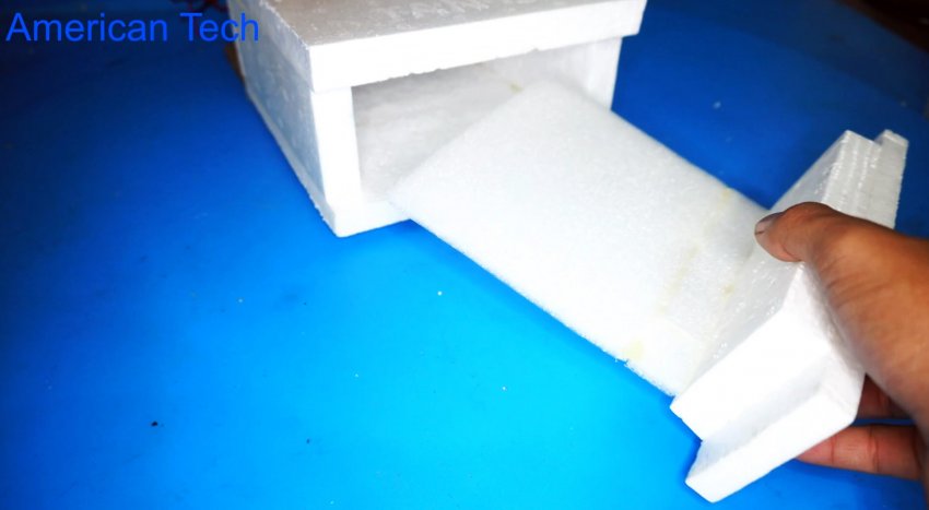 Корпус будет делаться из пенопласта, для этого предварительно нарезаем стороны будущего корпуса.