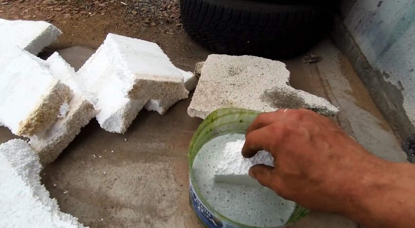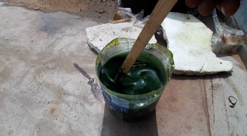 Пенопласт поначалу растворяется практически мгновенно, но постепенно процесс замедляется. Он собирается на дне в виде сгустков, поэтому раствор нужно периодически помешивать. Пенопласт вносится в таком количестве, чтобы добиться консистенции лака. Чем его будет больше, тем степень вязкости краски выше.
