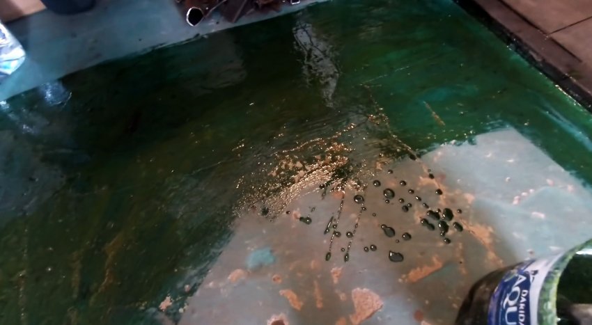 В широкую емкость, можно просто обрезанный ПЭТ бутыль, выливается и смешивается 2 л бензина и 1 л растворителя Р-12. Их объем можно менять в зависимости от того, сколько краски нужно, главное соблюсти пропорцию 2:1. Затем в них растворяется пенопласт.