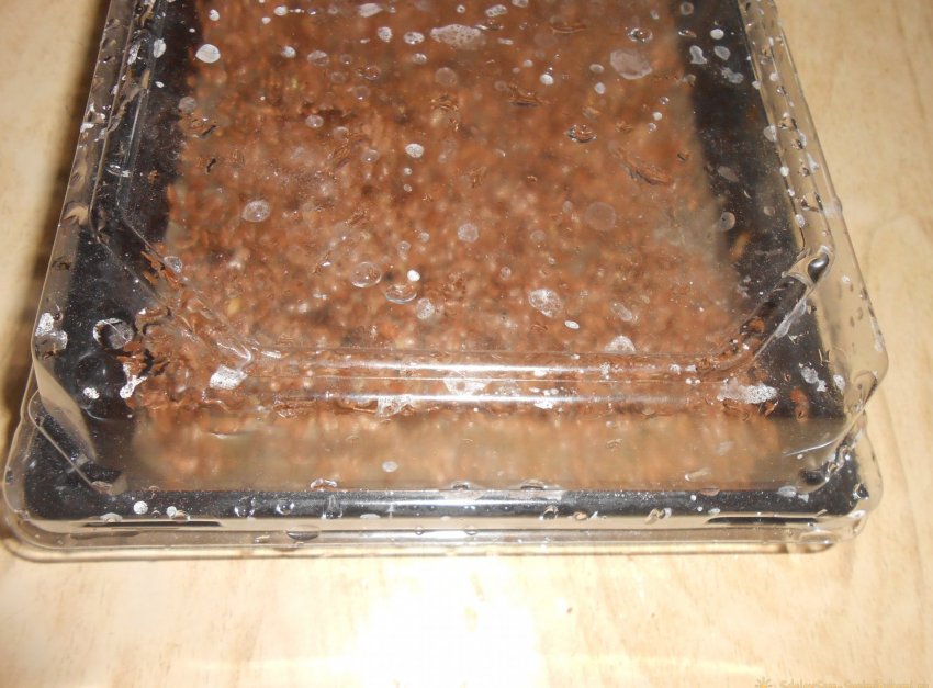 Далее я еще раз сбрызгиваю мини грядку под парником водой, накрываю крышкой или пленкой и ставлю емкость в темное и теплое место, например, на батарею.