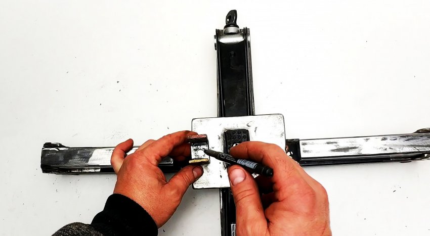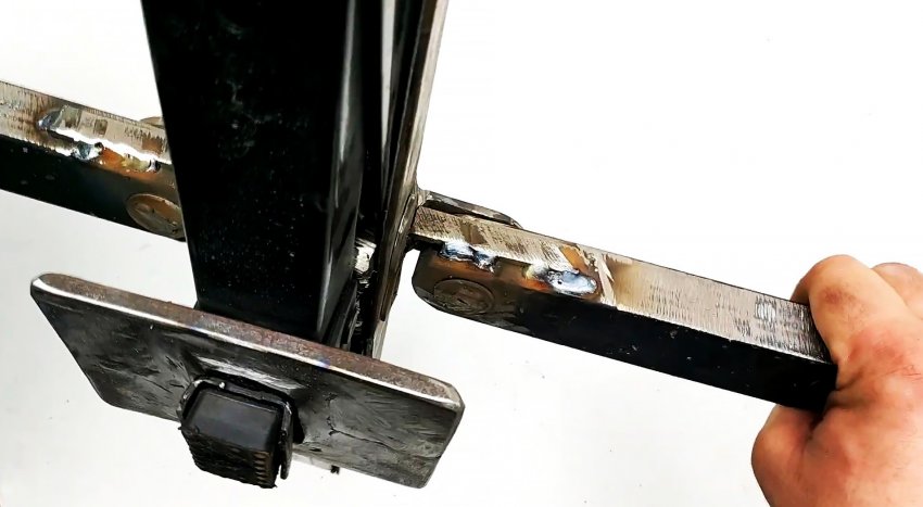 Для этого вырезаем 4 стальные пластины 40?50 мм и привариваем их изнутри к концам рычагов.