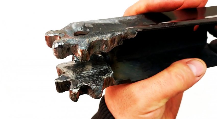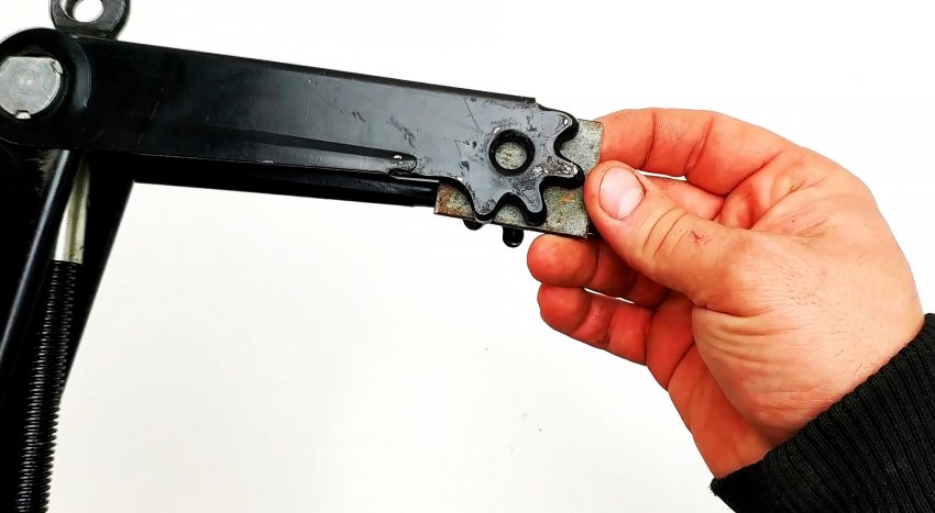 Вместо нее в дальнейшем поставим усиленную опору из стального уголка 50?50 мм. Теперь появилась возможность усиления зубчатых краев нижних рычагов.