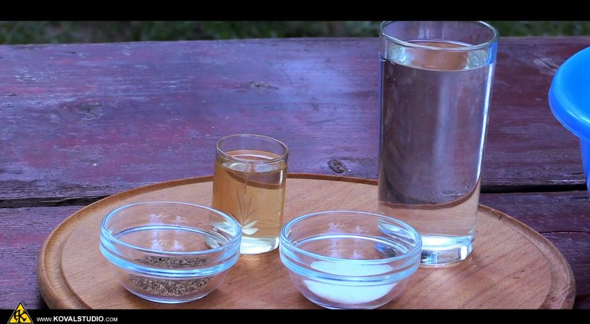 Посыпаем мясо и лук в емкости солью, черным молотым перцем, уксусом яблочным шестипроцентным и заливаем небольшим количеством воды согласно рецепту.