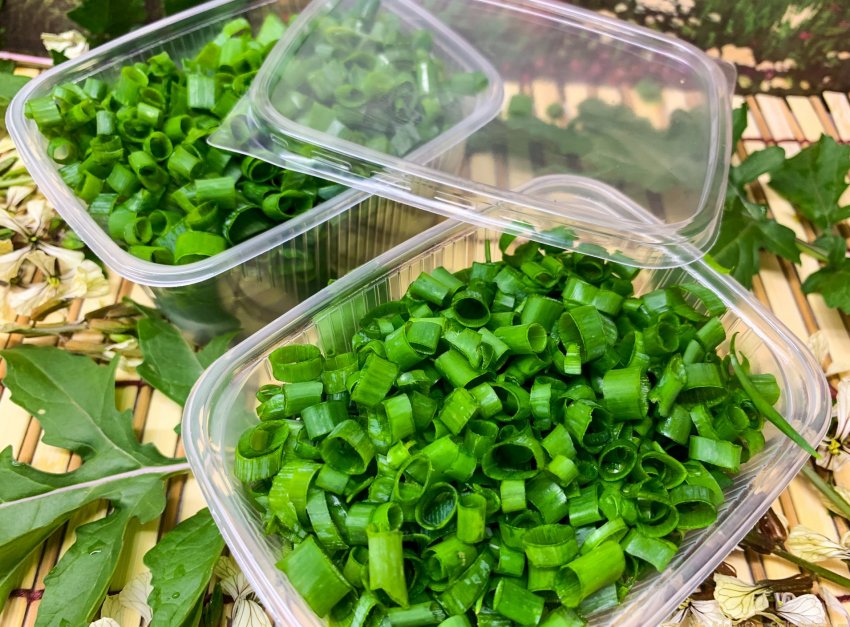 5. Затем рубленую зелень выкладываем в одноразовые контейнеры.