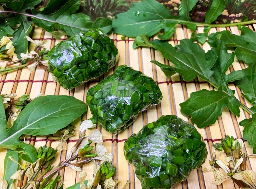 7. Также завернуть небольшими порциями для разового использования в пищевую пленку.