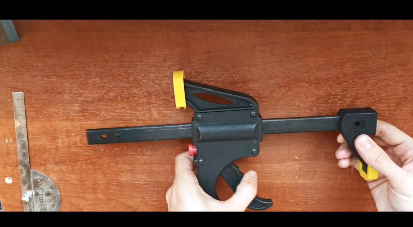 Далее нужно немного переделать быстрозажимную струбцину. Ее упор переставляется на второй конец штанги.