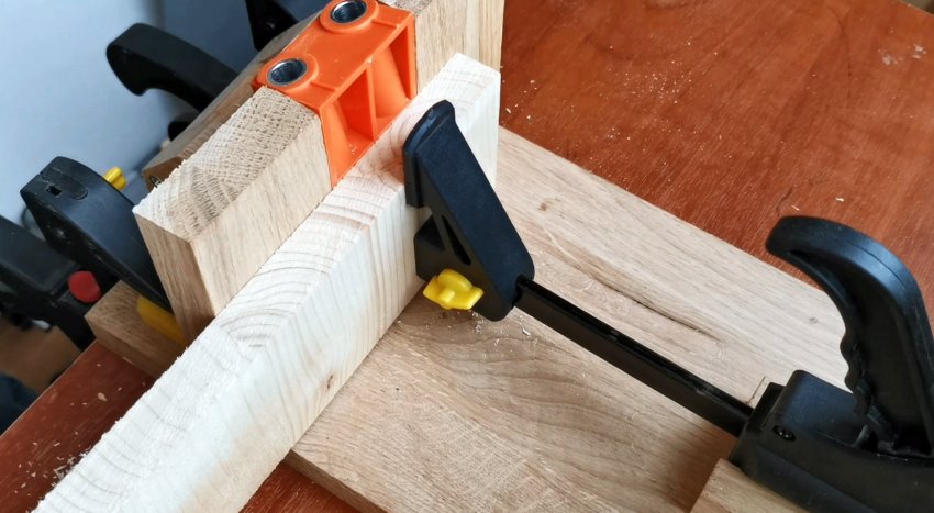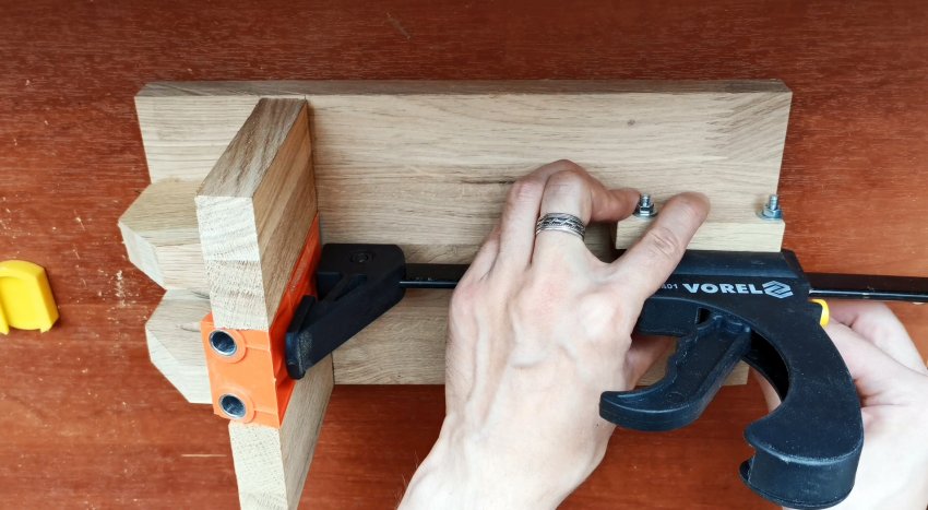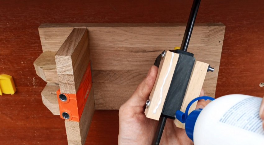 С их помощью струбцина крепится к подошве перед кондуктором клеем и саморезами.