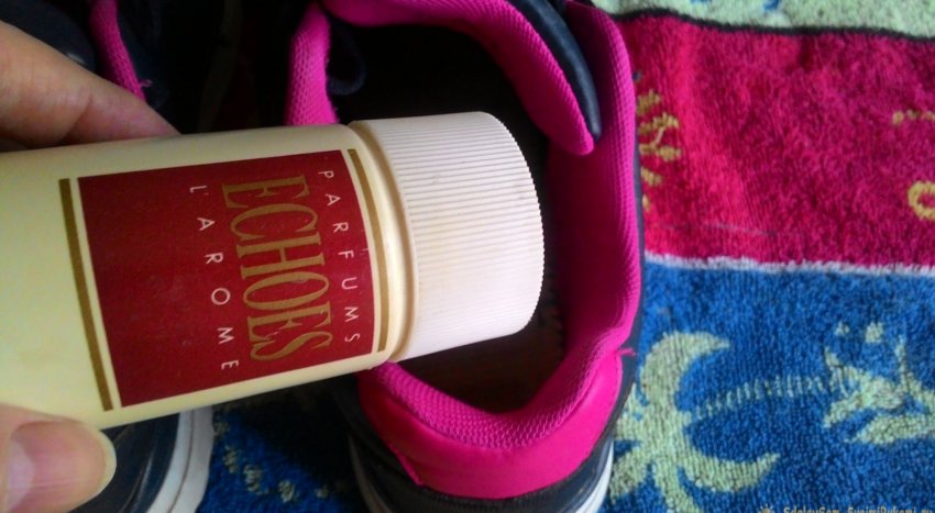 После того как обувь просохнет, возьмите немного ароматизированного талька и посыпьте внутри. Учтите, что носки нужно будет надеть светлые, чтобы на темных не оставалось следов талька.
