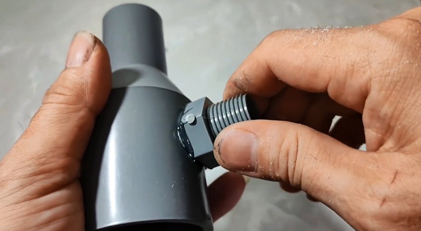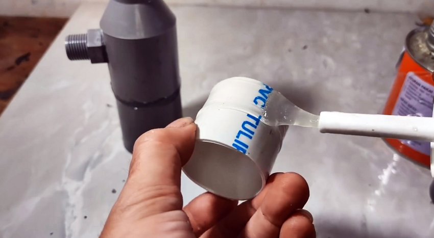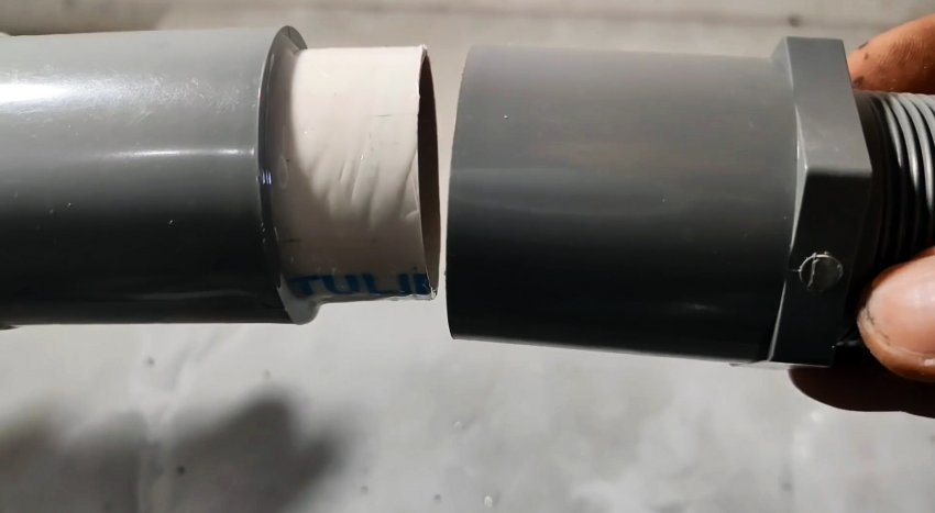 В полученную конструкцию вклеивается на ПВХ клей трубка 1 1/2 дюйма.