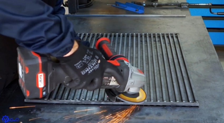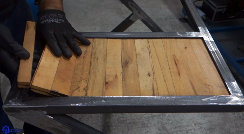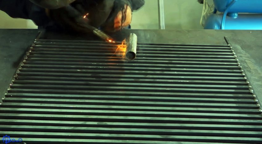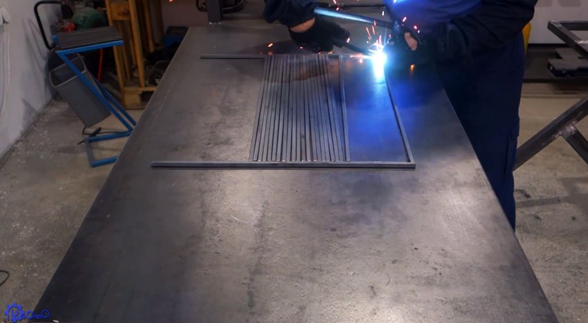 Далее нужно сделать рабочие разделочные поверхности с боков от жаровни. Для этого под каркас привариваются полосы, на которые будет настилаться доска.