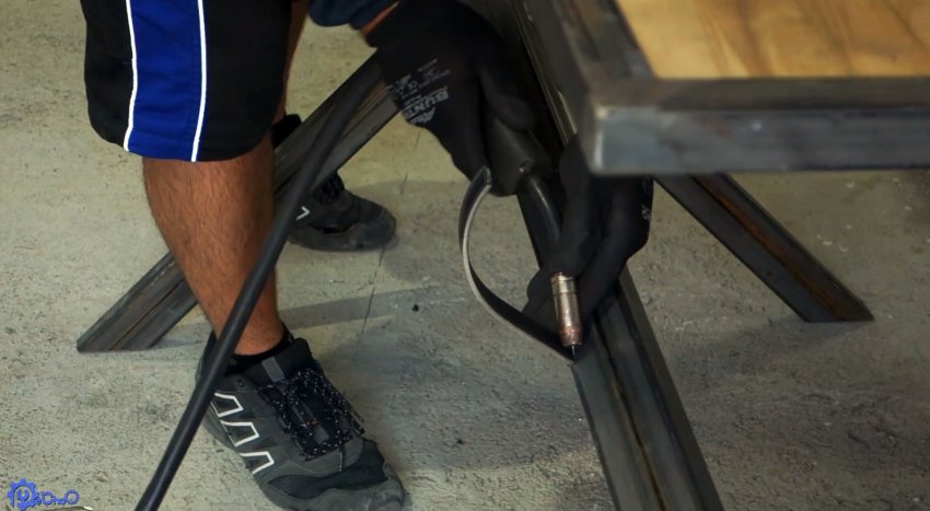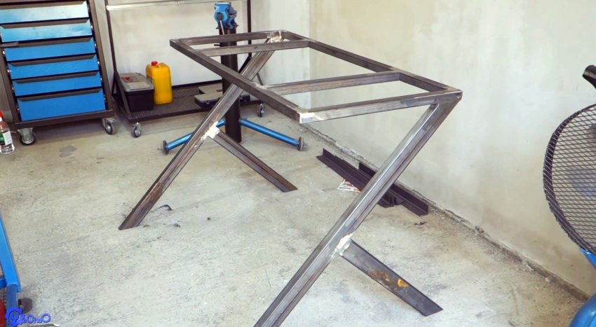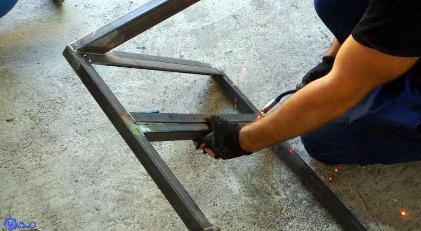 Ножки привариваются к рамке. Оптимально, чтобы высота столика получилась 85 см, что удобно для человека среднего роста.