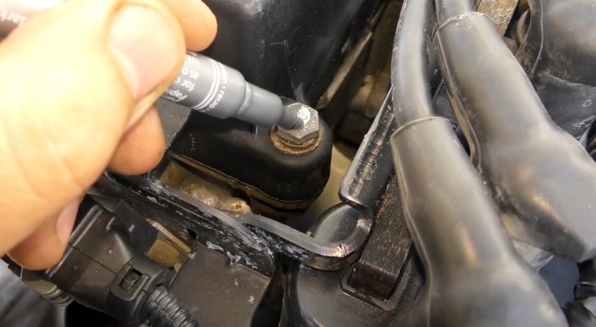 Золотистым маркером восстанавливают надписи на крышках бачков, серебряным закрашивают головки болтов. Очернителем протирают пластмассу и резиновые детали для их обновления.