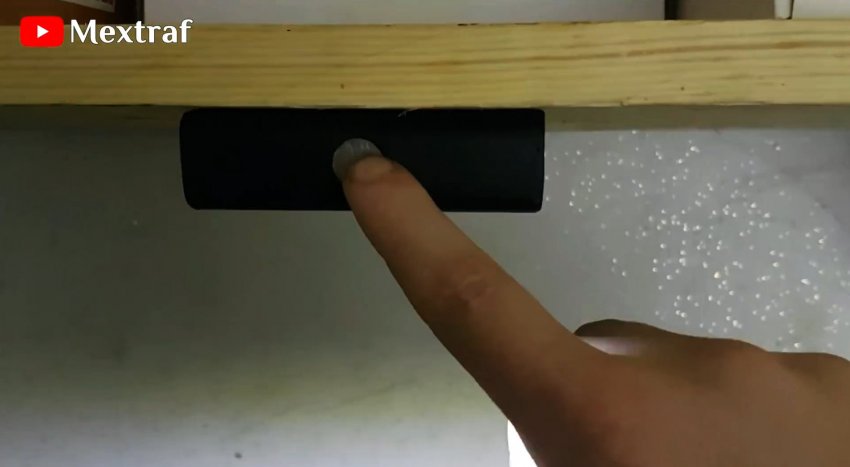 Располагаем под полкой. Стоит прикоснуться и свет включится, в результате будет отличное освещенное место.