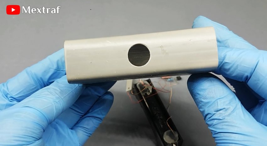 В корпусе с боковой стороны сверлим отверстие под сенсор.