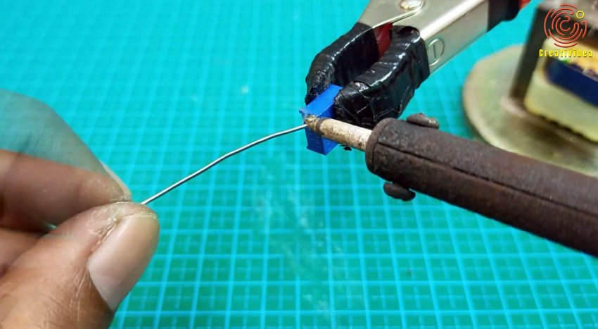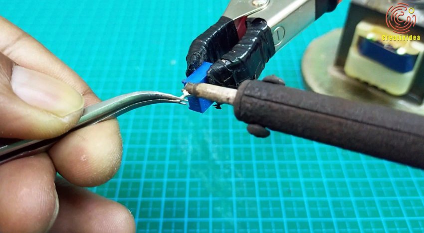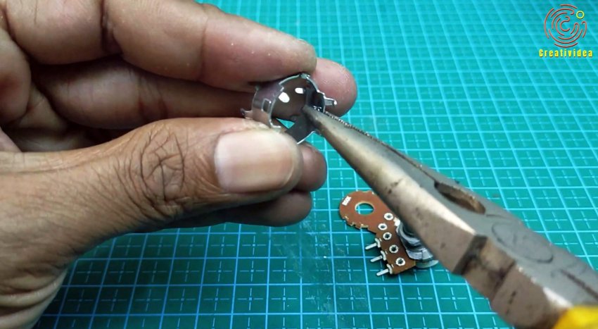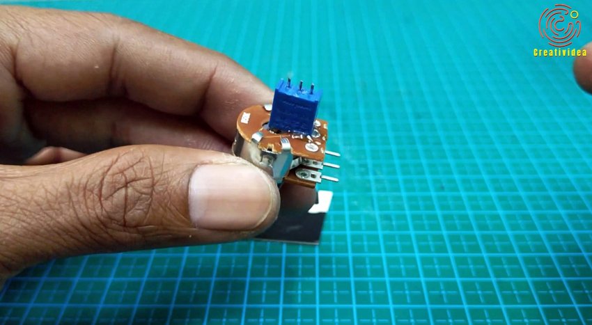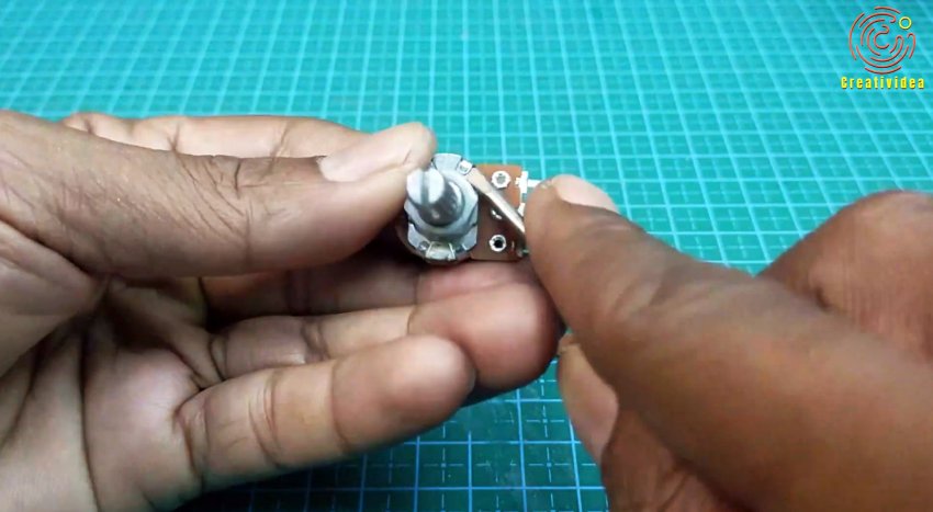 От переменного резистора откусываем контакт и припаиваем его к движку потенциометра.