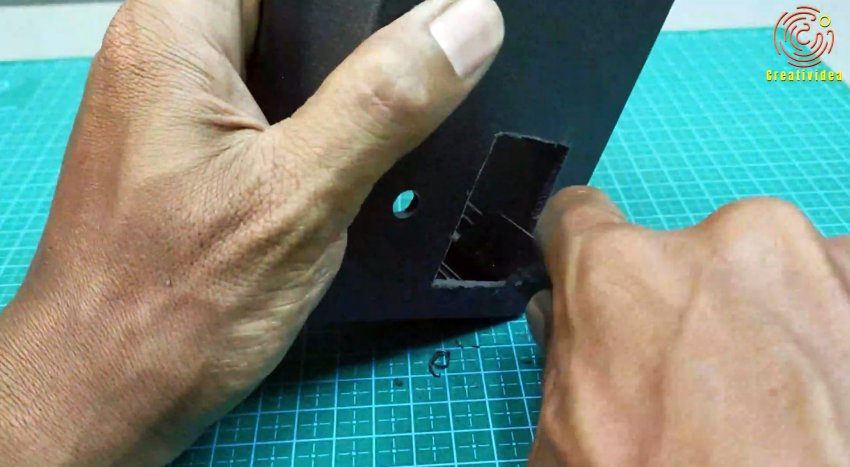 Сбоку делаем прорезы под гнездо подключения адаптера, переключатель, держатель предохранителя.