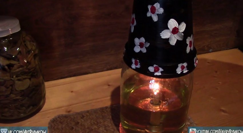 Если горение получается слабым, то потребуется добавить отверстий в банке. Горит такая лампадка при заправке 1,5-2 л масла около 13 дней.