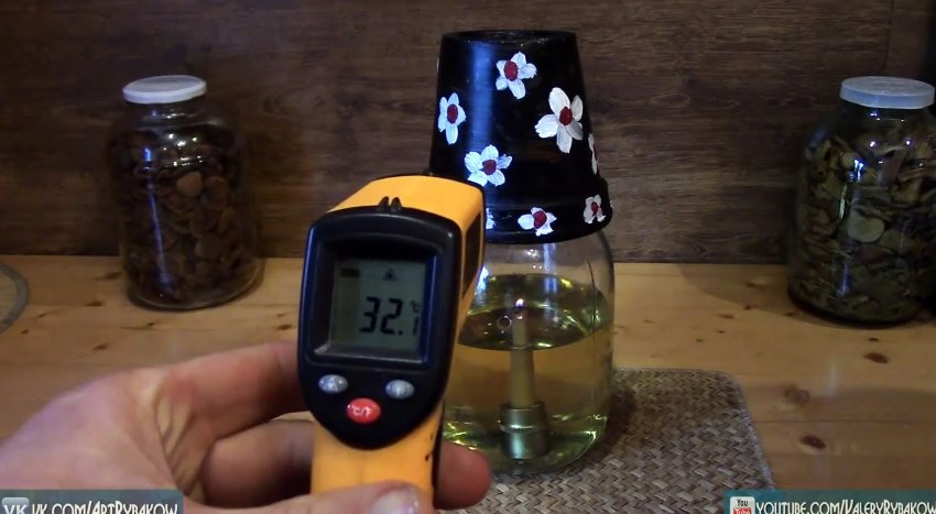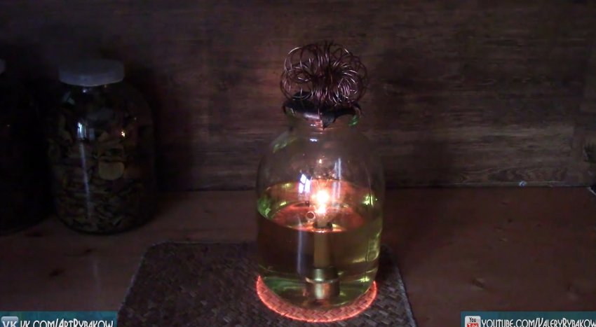 Затем в нее вставляется обычная свечка. Чтобы она не опрокидывалась, на нее снизу можно надеть груз, к примеру, торцевую головку. Важно, чтобы фитиль свечи был выше уровня масла.