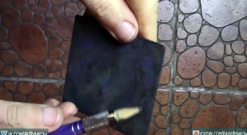 Из медной пластины делается крышка для стеклянной банки. Для этого используется отрезок в виде квадрата, у которого подрезаются и сгибаются уголки. В центре крышки нужно сделать пропилы накрест, чтобы выгнуть уголки, и получить отверстие. Сама крышка должна ложиться на банку не плотно, чтобы сбоку мог выходить воздух.