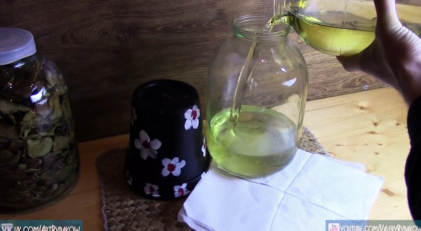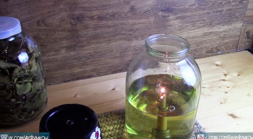 В банку наливается масло. В идеале использовать лампадное, так как оно не коптит.