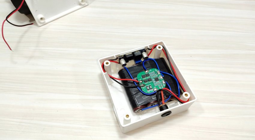 Учитывая емкость батареи (3200 мАч) и мощность фонаря (10 Вт), то свечения хватит на 5-6 часов непрерывной работы. Огромный плюс данной конструкции в том, что ее параметры можно варьировать как вам удобно: можно приобрести более или менее мощный прожектор, более высокоемкий аккумулятор.