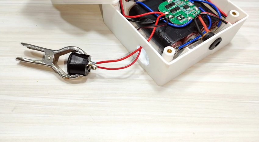 Батарея состоит из 4 литий-ионных аккумуляторов управляемых контролером. Светодиодная фара подключается к батарее через переключатель. Общее напряжение питания 14,4 В.