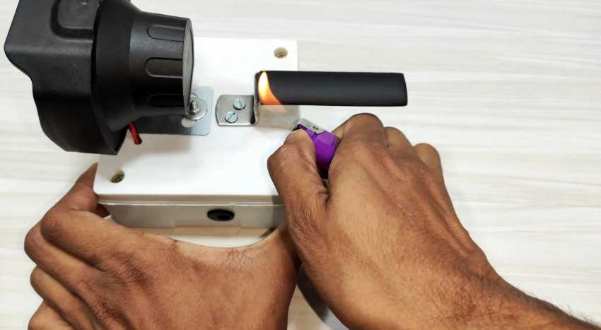 На ручку надеваем термоусадку, усаживаем зажигалкой.