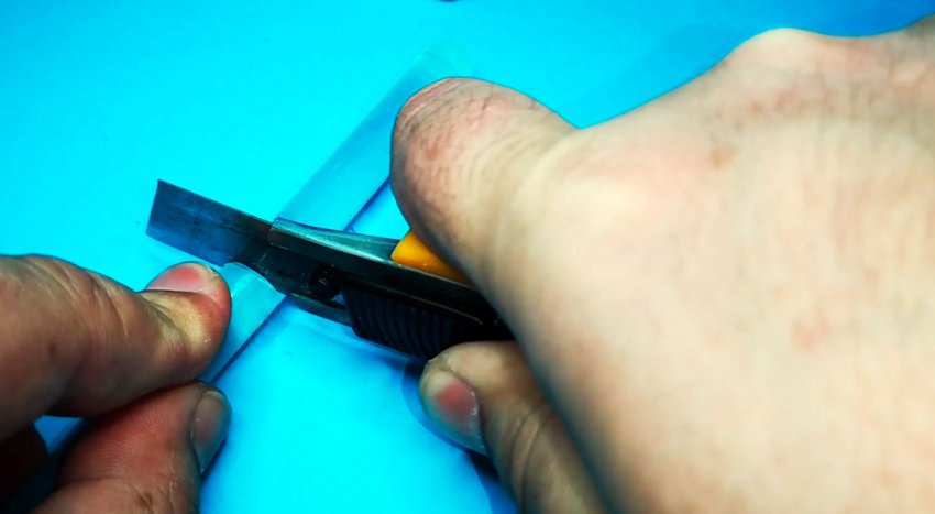 От стержня термоклея канцелярским ножом отрежем кусок по длине LCD дисплея.