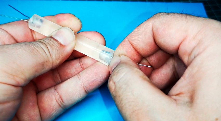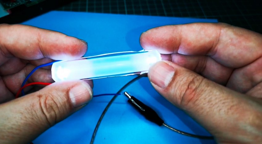Просверлим, либо паяльником проделаем отверстия по бокам в этом стержне и установим светодиоды.