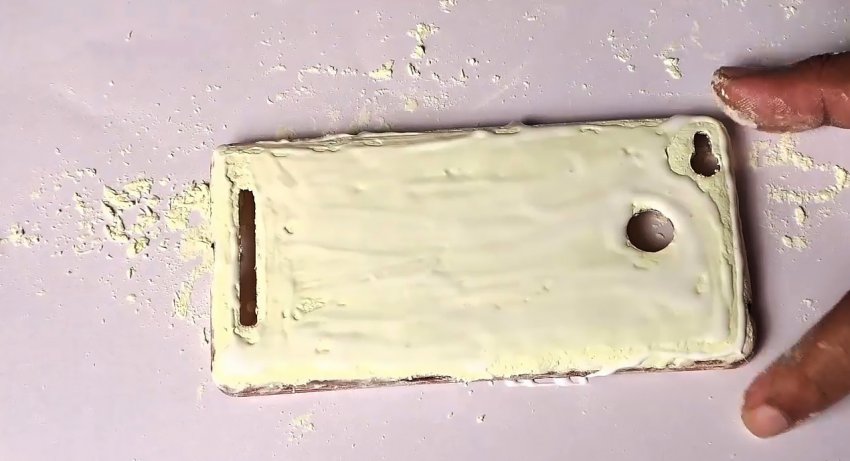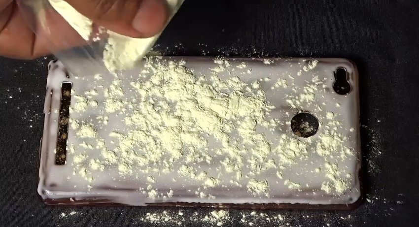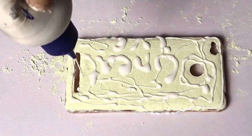 Распределяем порошок равномерно и даем ему высохнуть примерно 1 час. Далее опять сверху наносим клей.