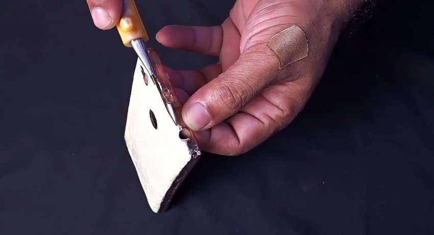 Затем, канцелярским ножом срезаем лишние наплывы по периметру.