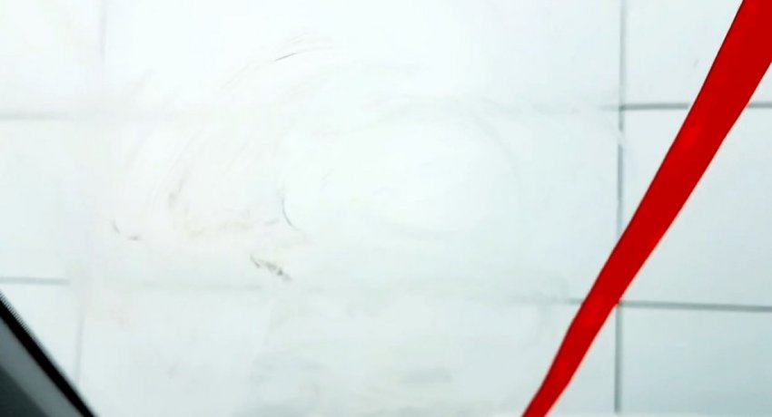 Через некоторое время замечаем, что необработанная часть остекления запотела, а защищенная гелем или пеной для бритья – нет.