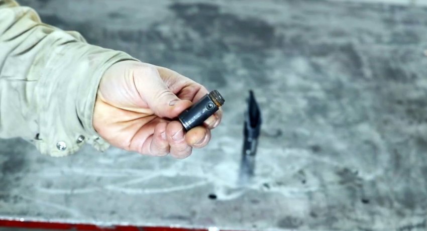 Далее нужно вварить в верхнюю часть широкой трубки центрирующую сверло втулку. Для этого можно использовать срезанный хвостовик из сломанной коронки.