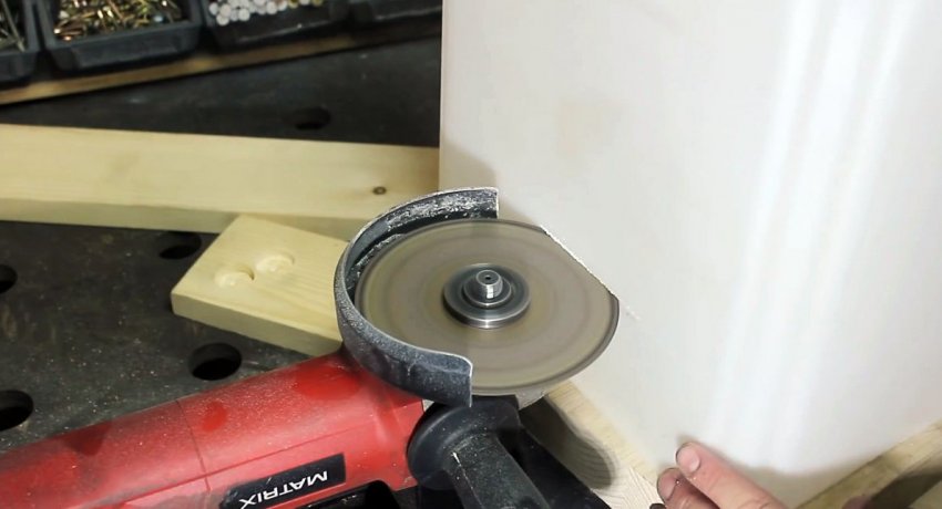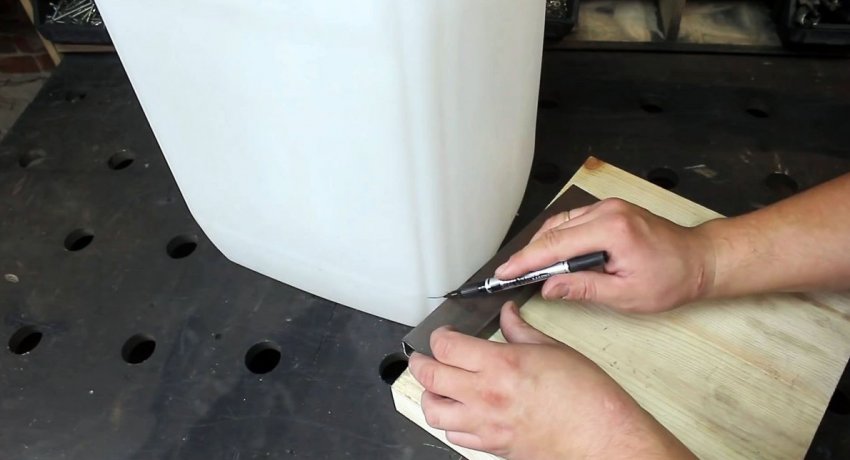 В боковине канистры вырезается большое окно под ящики. При этом нужно оставить немного пластика для жесткости сверху и у дна.
