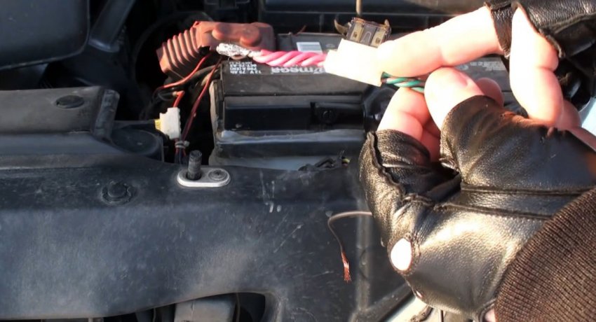Нагреватель присоединяется к клеммам аккумулятора.