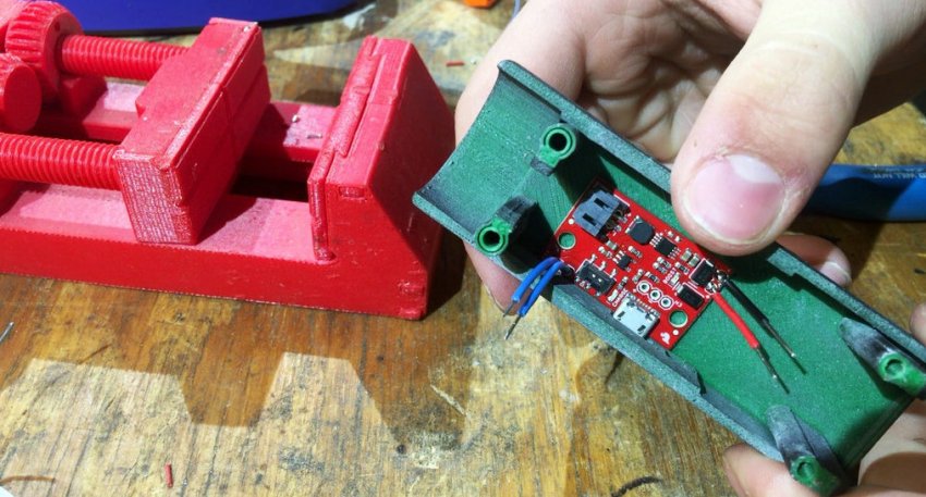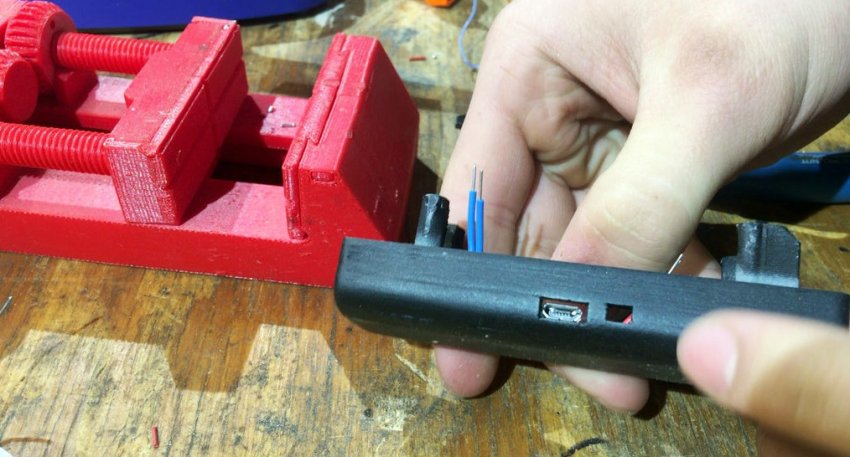 В корпусе делаются прорези под гнездо зарядки модуля и мини переключатель.