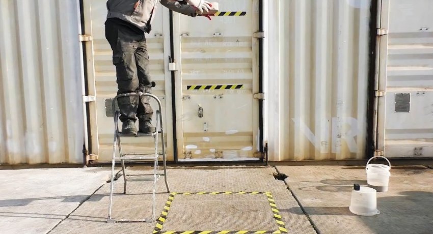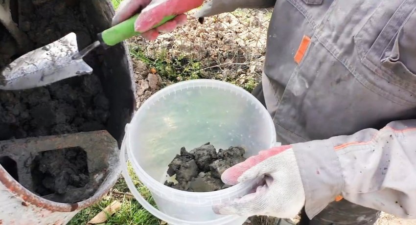 С бетономешалки отбирается образец в пластиковое ведро. Этот раствор за счет густоты плохо разглаживается.