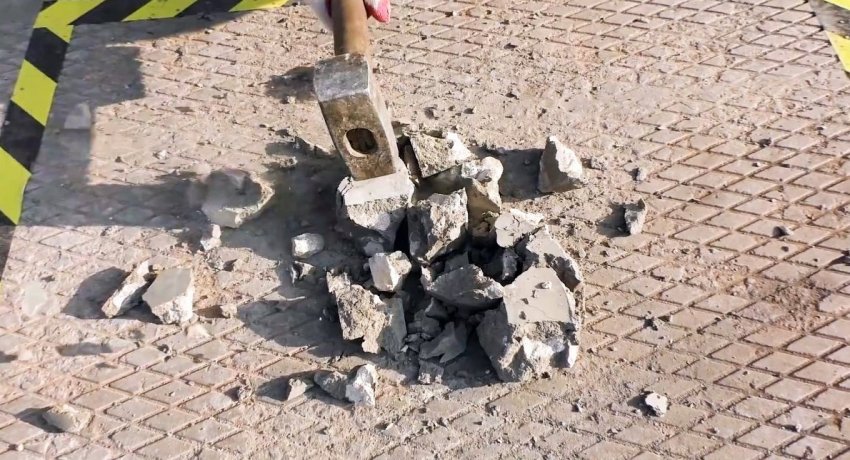 По прочности он хуже обычного бетона. Образец разбивается при броске с высоты 2 м с первого раза. Он также легко крошится кувалдой.