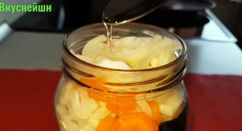 Банка обязательно должна быть забита доверху. Добавляем подсолнечное масло.