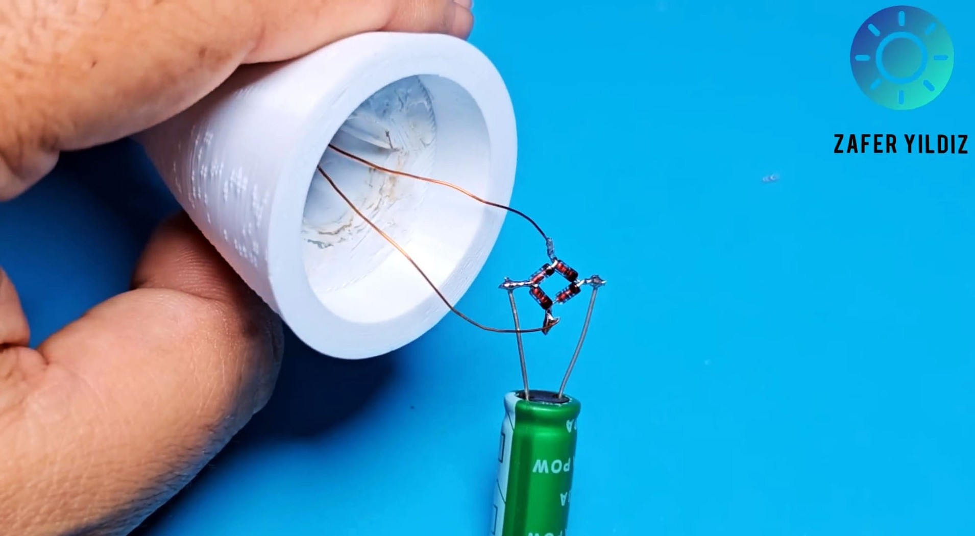 Собираем диодный мост и соединяем с выходом катушки и ионистором, соблюдая полярность.