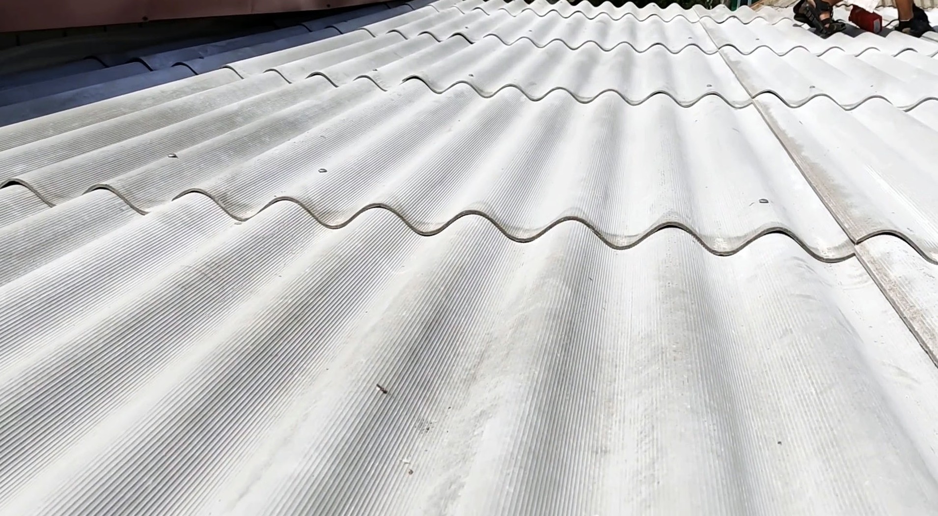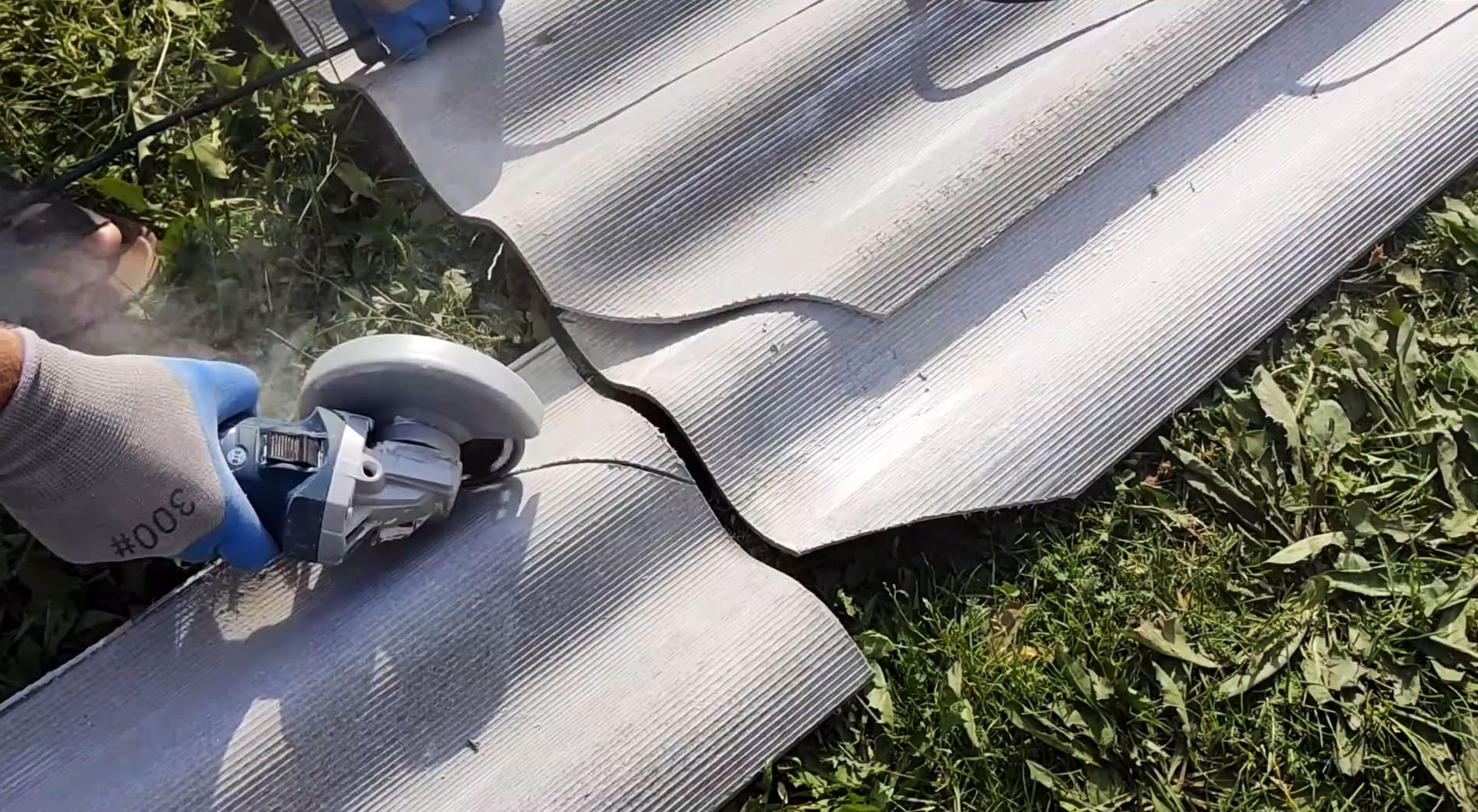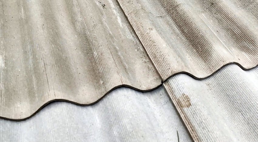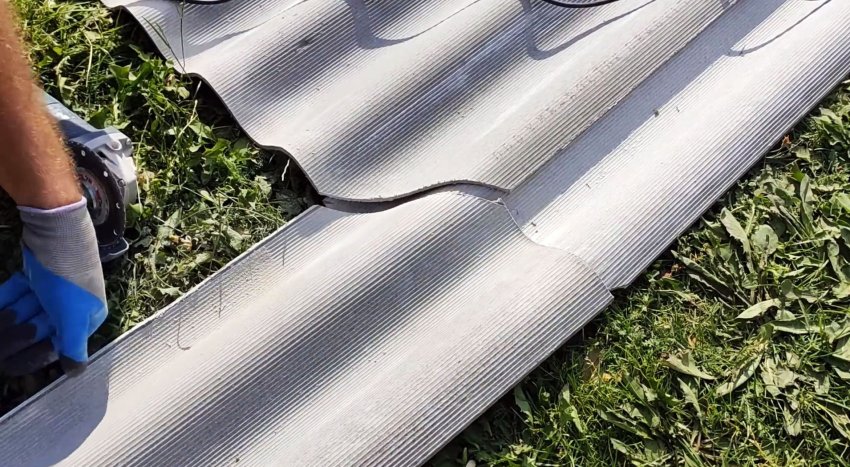 Если для укладки не хватает шифера, можно сделать вставку в предпоследнем ряду. Для этого нужно заранее разложить все листы и отметить углы, а затем отпилить их.