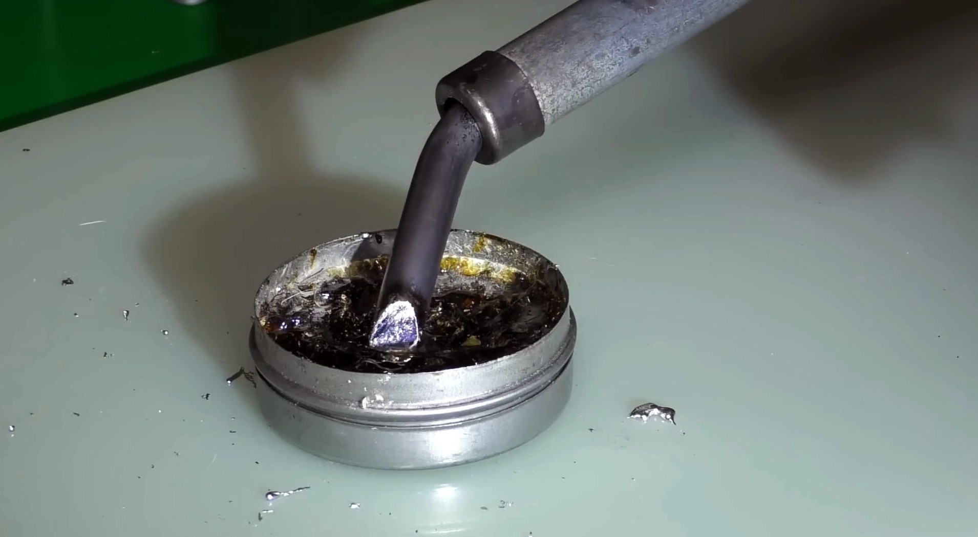Перфекционисты могут зачистить жало от затекшего припоя после остывания паяльника.