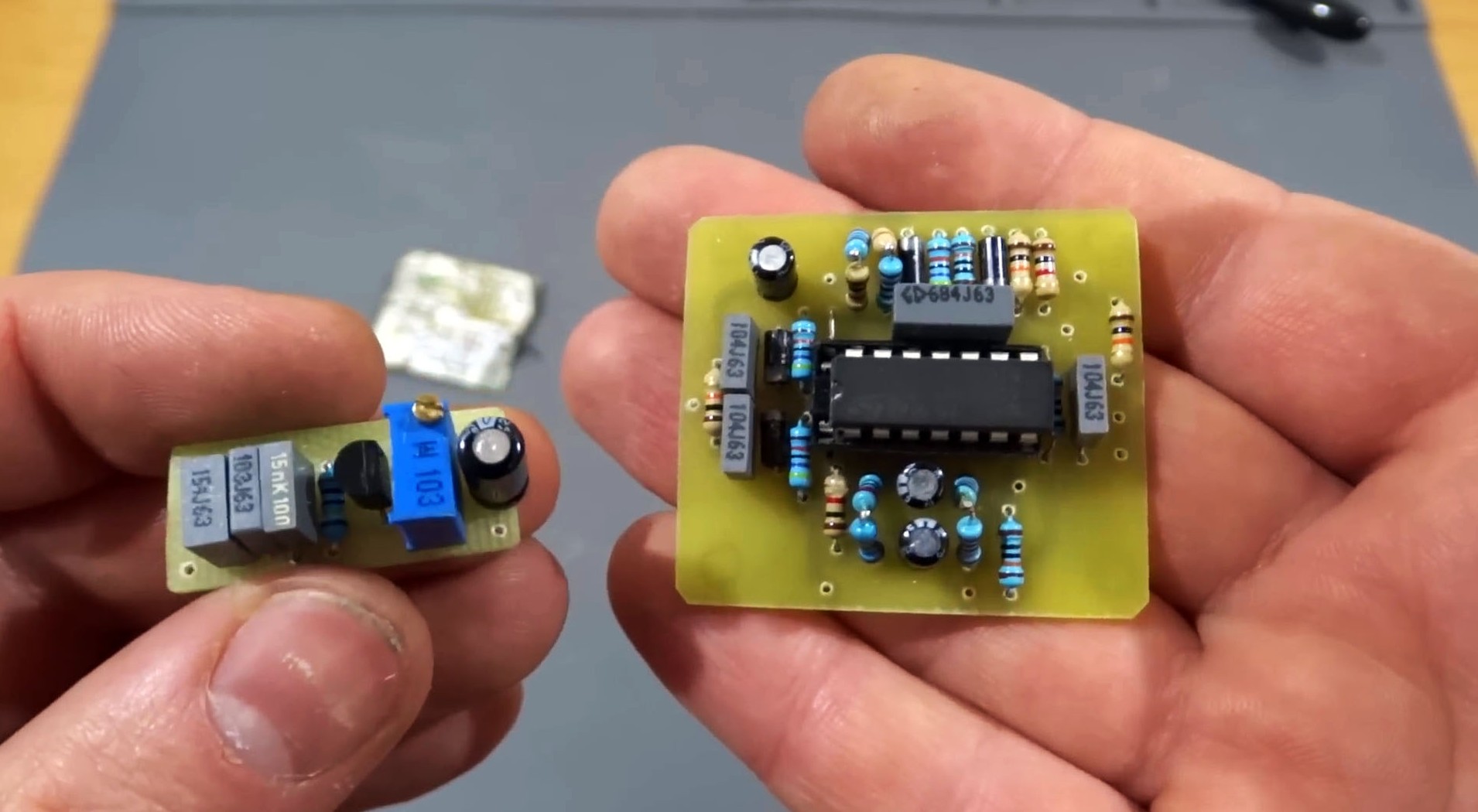 Вместо микросхемы ТЛ074 можно использовать LM324, но я выбрал ТЛ074 из-за лучшей чувствительности. Провод, соединяющий платы, обязательно должен быть экранированным.